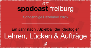 Vor nun einem Jahr ist das Buch „Spielball der Ideologie – Der SC Freiburg in der Zeit des Nationalsozialismus“ erschienen. Laura wirft gemeinsam mit Dr. med. Jan Bergk und Dr. Silvio Fischer vom Arbeitskreis Vereinsgeschichte einen kritischen Blick auf die Studie, um die Stärken und Schwächen des Buches herauszuarbeiten und auch die bisher weniger besprochenen Lücken der Studie zu betonen, an denen nun weiter gearbeitet werden kann und sollte. Zudem gehen wir der Frage nach, welche Aufträge sich für Verein und Mitglieder nun aus den Ergebnissen der Studie ergeben.